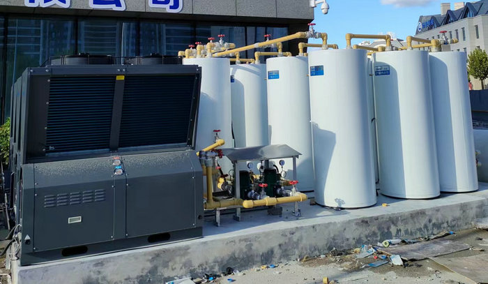 浙江温州玉环市方舱医院秀色直播ios热泵秀色APP下载免费采用了速热承压热水系统(ZN-KFDX-100Ⅱ+455L)。主要设备有:4台10匹秀色APP直播秀色直播ios热水机(ZN-KFDX-100Ⅱ)+20个455L承压水箱(内胆304不锈钢,外胆201不锈钢,保温厚度50MM)