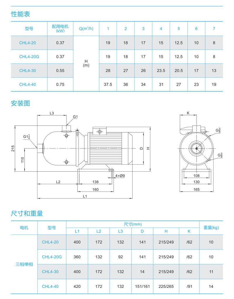 南方卧式不锈钢多级离心泵CHL4-10/20/30/40/50